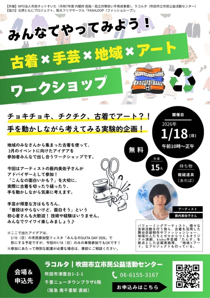 【共催】NPO法人市民ネットすいた(令和7年度 内閣府 孤独・孤立対策担い手育成事業)/ラコルタ(吹田市立市民公益活動センター)